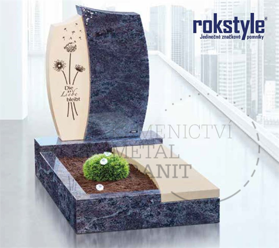 Nápisová deska je tvořena spojením bílé a černé žuly v jednoduchém oblouku.V horní části září krystaly Swarovski a v právé části je pak dostatek místa pro nápisy. S podkladem černé žuly máte možnost vybrat si prakticky jakoukoliv barvu písma.