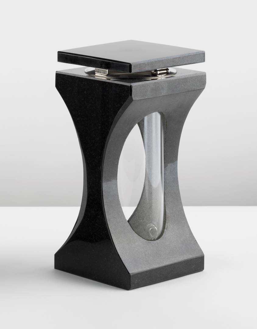 Die moderne Grableuchte lässt sich bequem mit der Vase V123 und der Schale M33 im gleichen Design und in einer Größe nach Kundenwunsch kombinieren.