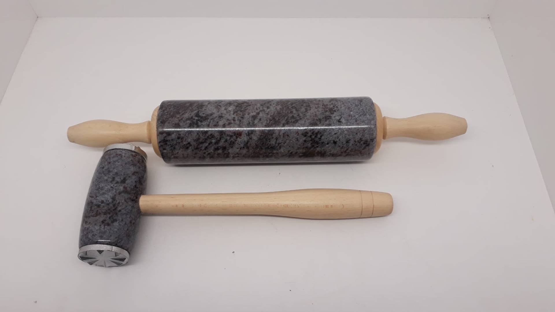 - kamenný váleček na těsto - povrch kamenného válečku je leštěný, takže se k němu těsto nelepí. Váleček má otočné rukojeti a díky jeho hmotnosti na něj není třeba při práci příliš tlačit.